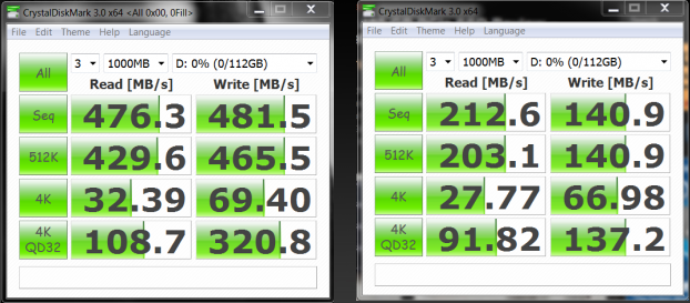 Crystal Disk Benchmark is used to measure read and write performance through sampling of raw (0/1 Fill) or random data. Many new SSD owners who cant wait to test the performance of their SSD often grab this program and run a quick test, not realizing that they are testing with random data, not RAW or 0Fill data as tested by manufacturers. The 0Fill result is on the left and random data result on the right.