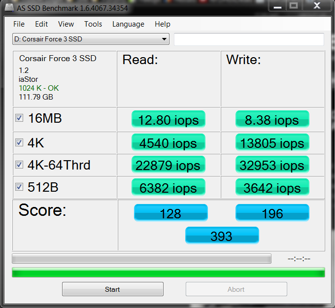 The result on the right is giving a great indication of how testing of this ‘SandForce Driven’ SSD results in testing incompressible data. SandForce is not a fan of testing with Crystal Diskmark with random data sampling or that of AS SSD as the results portray an unrealistic view of how the drive will perform compared to others in reality. We tend to agree with such which is why we leave our comparison testing to PCMark Vantage. Fair is fair though and lets take a look at AS SSD…