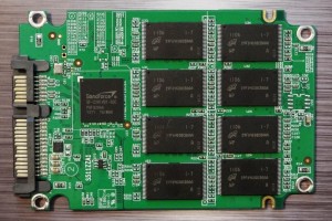 The SandForce SF-2281 processor is on the front of the Corsair Force Series 3 SSD printed circuit board (PCB) along with the SATA 3 interface which allows connecting the drive to your laptop or desktop computer.