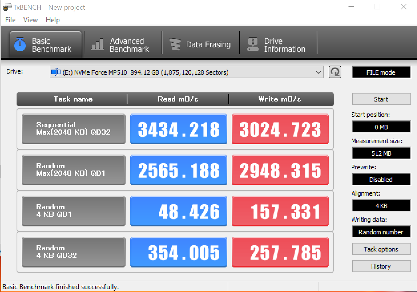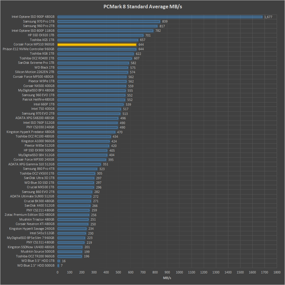 CORSAIR FORCE SERIES MP510 NVME SSD RESULTS