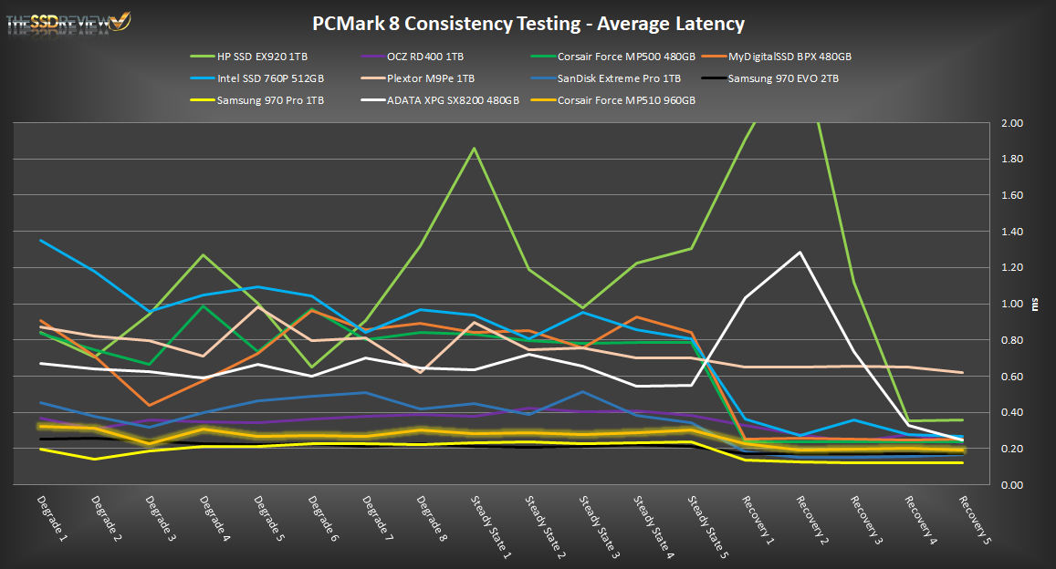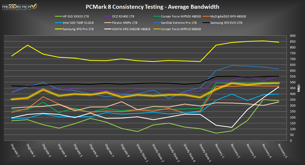 In reading the results, the Degrade and Steady State phases represent heavy workload testing while the recovery phase represents typical consumer light workload testing.