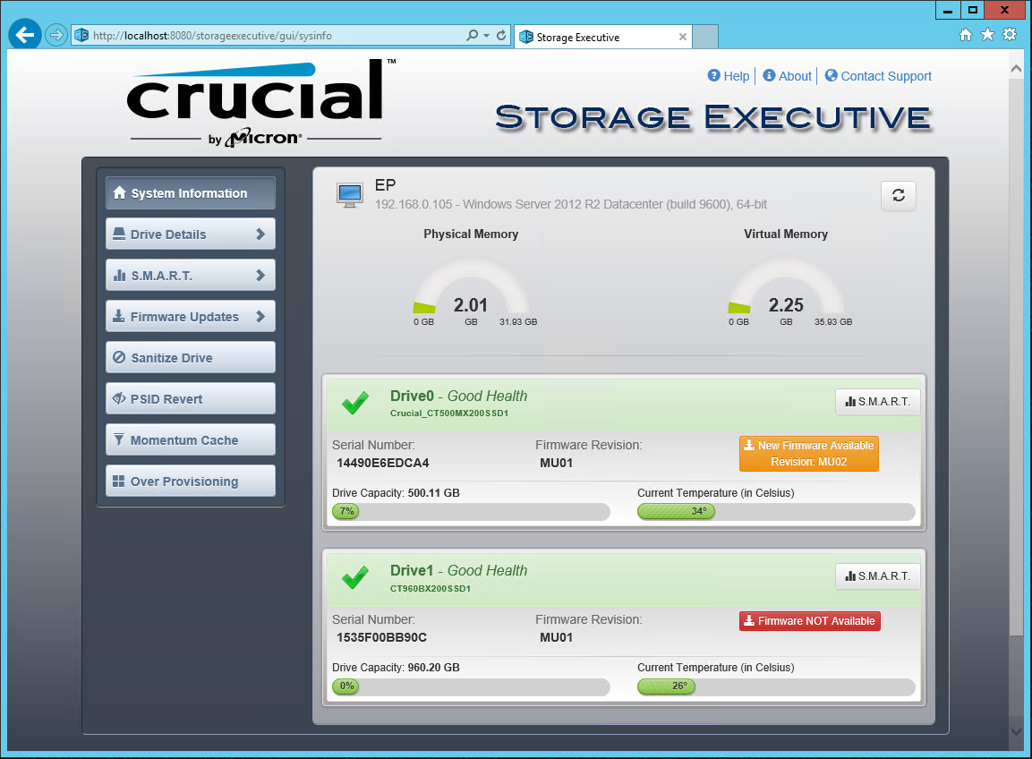 Also included is access to Crucial’s SSD toolbox, Crucial Storage Executive. It gives you information about your drive, options to update the firmware, Secure erase, enable Momentum Cache, and newly added with this revision (3.24) you even manually adjust over provisioning within the software to help improve performance and endurance.