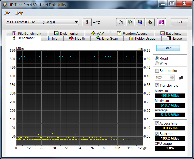 HDTune Pro is a great software program that lets us have a look at all aspects of testing through several separate tests: