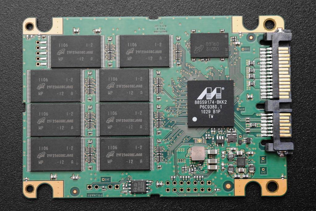 The heart of the Crucial M4 is the single chip eight channel Marvell 9174 6Gbps controller and it contains 16 modules of Micron 16GB 25nm NAND flash memory (29F256G08CJAAB). It is quite possible that few others may be able to match the price point simply because this memory is built in house.