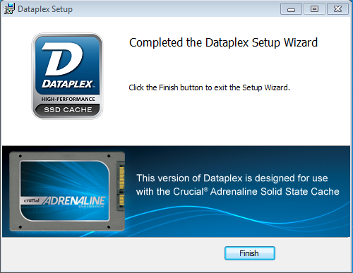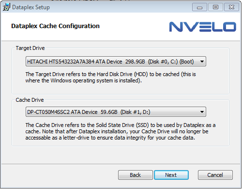 The third screen will confirm which hard drive is going to be cached as well as the Crucial Adrenaline Caching SSD. If the SSD is not recognized, check power and data connections.