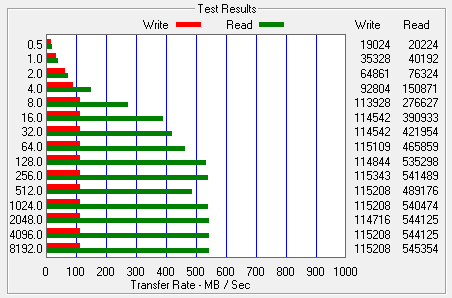 Initial ATTO results show our read transfer speeds to have increased by nine times and writes by two with the Crucial Adrenaline caching solution in place. There is no mistake here and this is the first indication that, with your hard drive cached with the Adrenaline, your hard drive will perform simlar to that of an SSD.