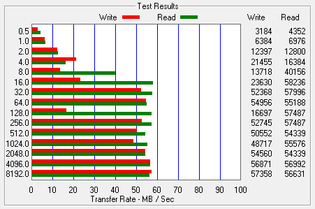 The hard drive we chose for testing is a Hitachi 320GB 5400RPM hard drive that was active in a laptop for some time. The test procedure is simply the benchmarked performance before (left) and after caching (right). A click on the ATTO scores will bring them up to full size.