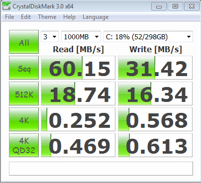 The key metric that we wanted to point out with the Crystal DiskMark tests was the before and after specific to the low 4k random write performance, the cached difference being about 122 times faster than that of the hard drive alone. Considering that this disk access method is a main contributor to the visible difference we see when upgrading from a hard drive to SSD, one can be confident in the visible upgrade of the Crucial Adrenaline Caching SSD.