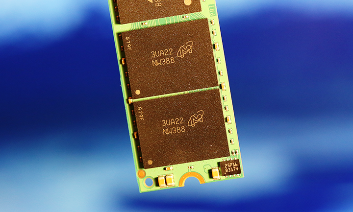 To the right is a Micron 256Mb DRAM cache memory chip and there also four modules of Micron NAND flash memory that we haven’t seen prior in any SSDs. They are first gen 1Tb density modules and each has a capacity of 128GB.