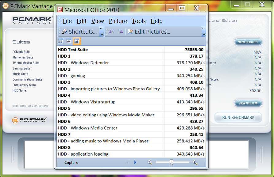 The SSD Review uses benchmark software called PCMark Vantage x64 HDD Suite to create testing scenarios that might be used in the typical user experience. There are eight tests in all and the tests performed record the speed of data movement in MB/s to which they are then given a numerical score after all of the tests are complete. The simulations are as follows: