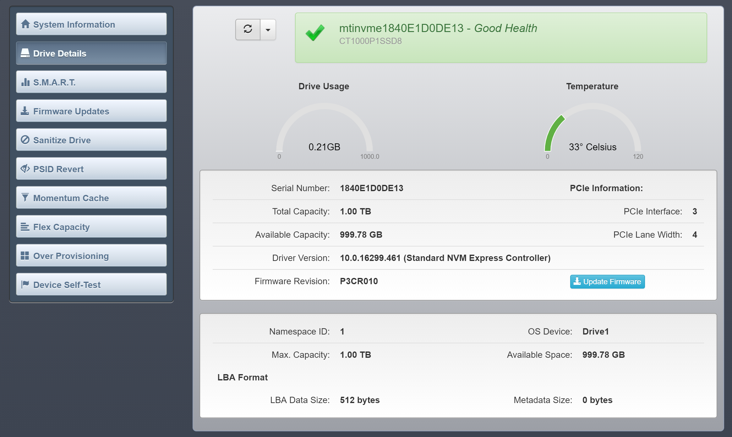 Another great add on to the Crucial P1 SSD is its free Crucial Storage Executive Tool which is probably one of the most complete of its kind on the market. This video is a great representation of what it is capable of: