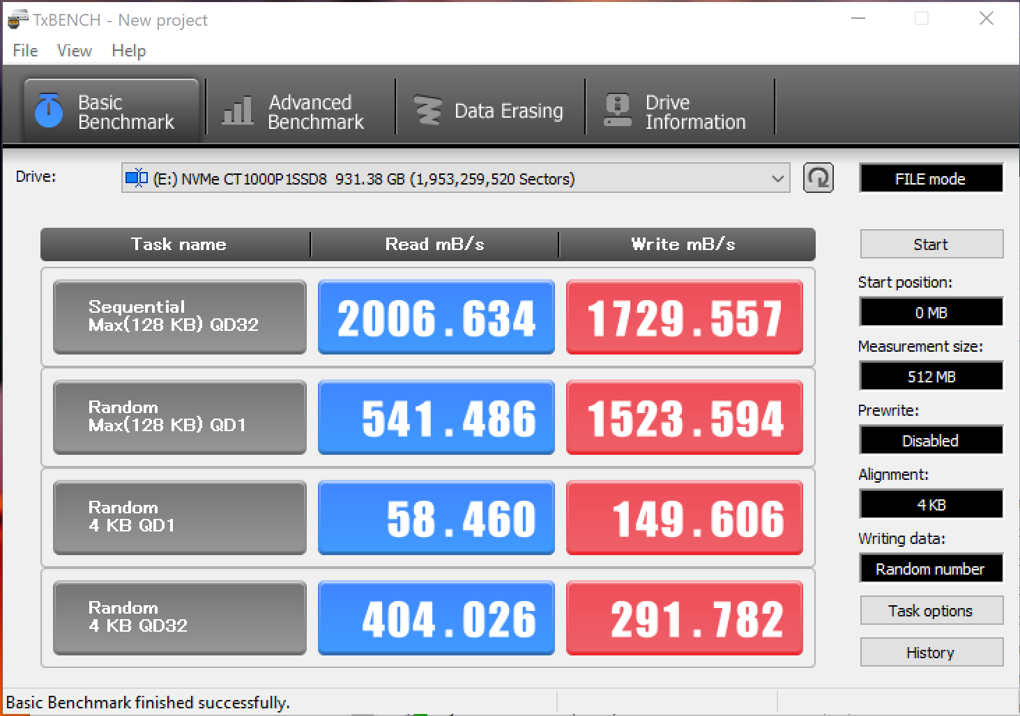 Crucial P1 NVMe M.2 1TB SSD RESULTS