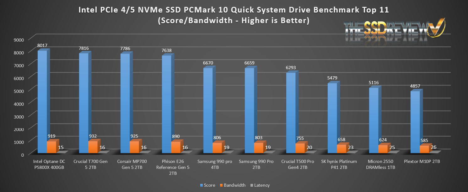 The 2TB T500 Pro once again placed right there beside the 8-channel 990 Pro.