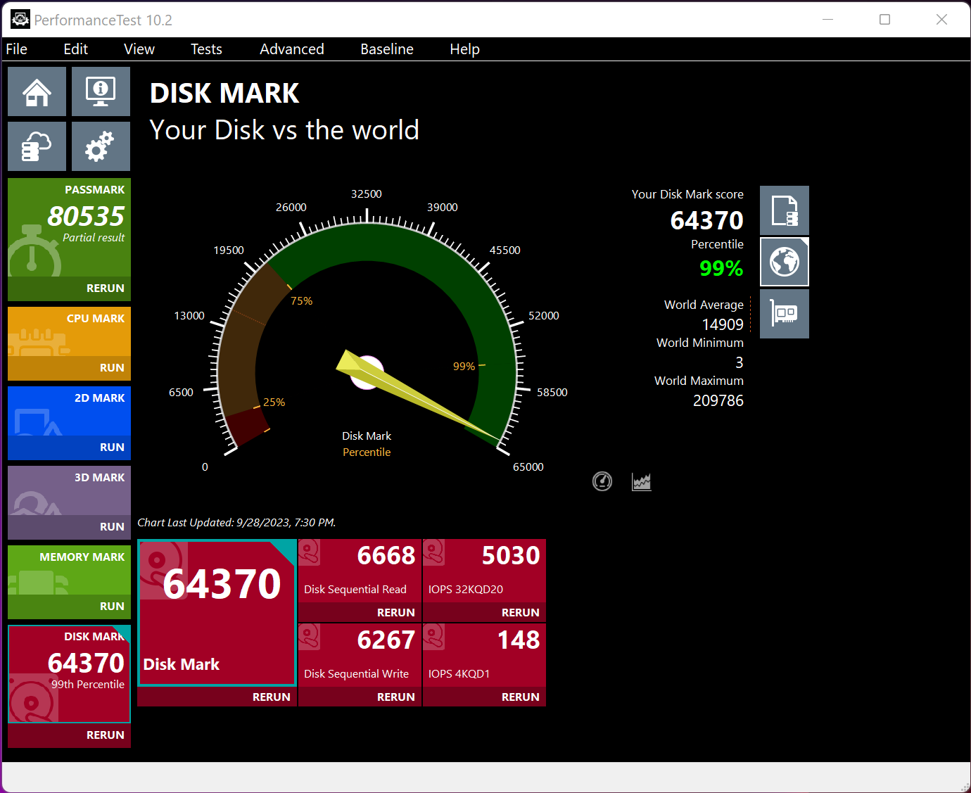 We thought we might add a few extras in our report today, PassMark Performance Test DiskMark component being a nice addition. This software tests sequential reads and writes, along with IOPS and compares the result with millions of other SSDs worldwide. We might suggest being in the 99th percentile of all SSDs tested was a nice result.