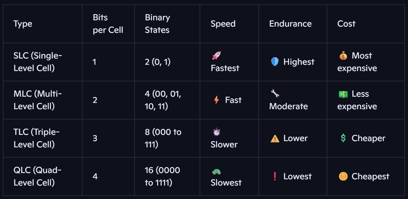 Suddenly, things got crowded. The threshold voltages, or basically, the signals that tell the system what data is stored, got closer together. That made everything a bit trickier and slower, and introduced more room for error. And then came TLC…Triple-Level Cell introducing three bits per cell, or metaphorically, three people or eight states crammed into the same room. Naturally, they’re constantly bumping into each other. Technically speaking, the voltage states (used to read and write data) are now packed much closer together, which increases the chance of errors. This is especially true when electrons aren’t fully cleared during an erase cycle, leading to reliability issues over time.