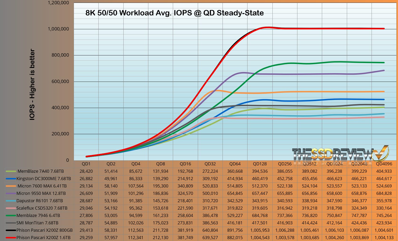 1000K 8K 50/50 write IOPS is a very impressive return for both capacities of the Phison Pascari X200Z Gen5 SSD.