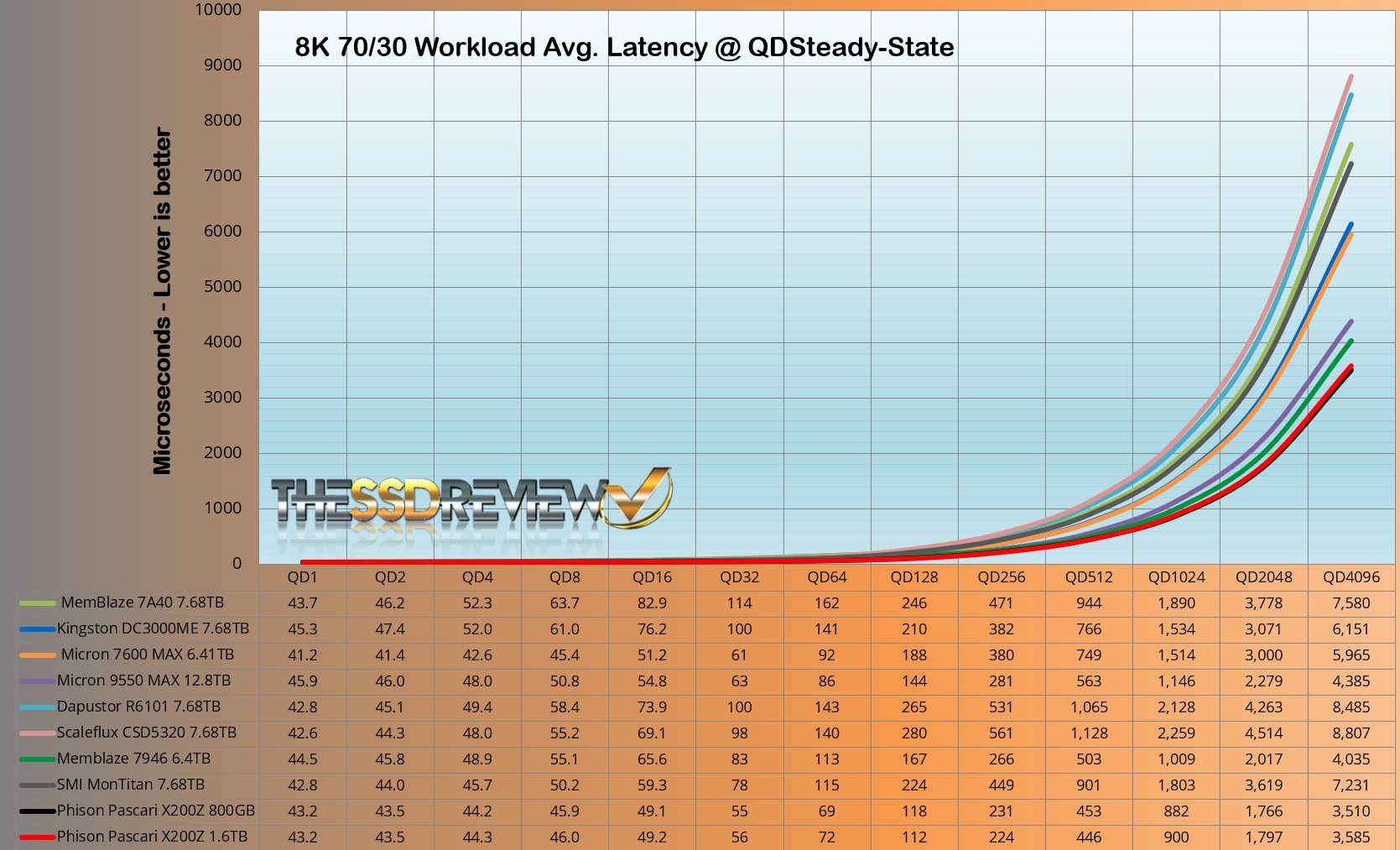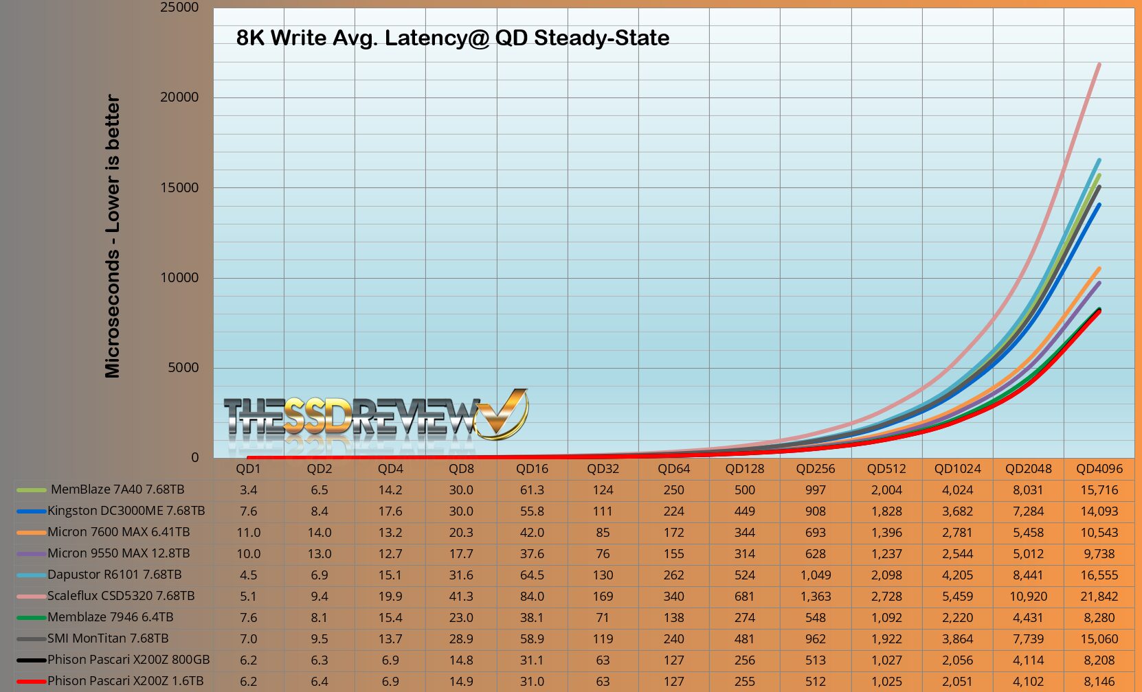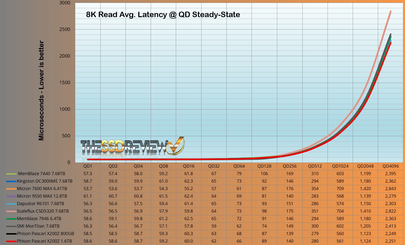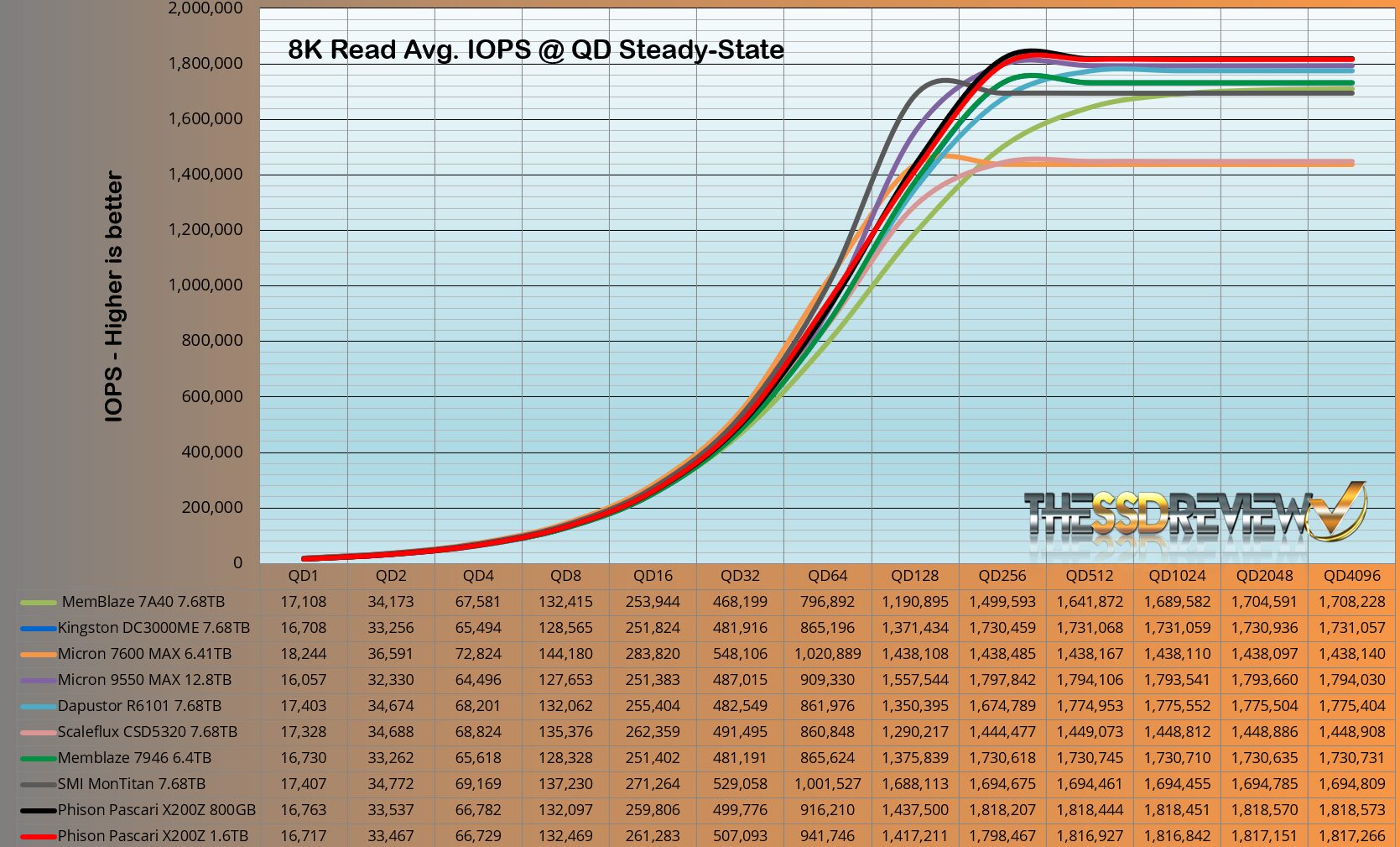 The X200Z 8K read average performance of 1800K is very impressive, and once again, the top results for this test to date.