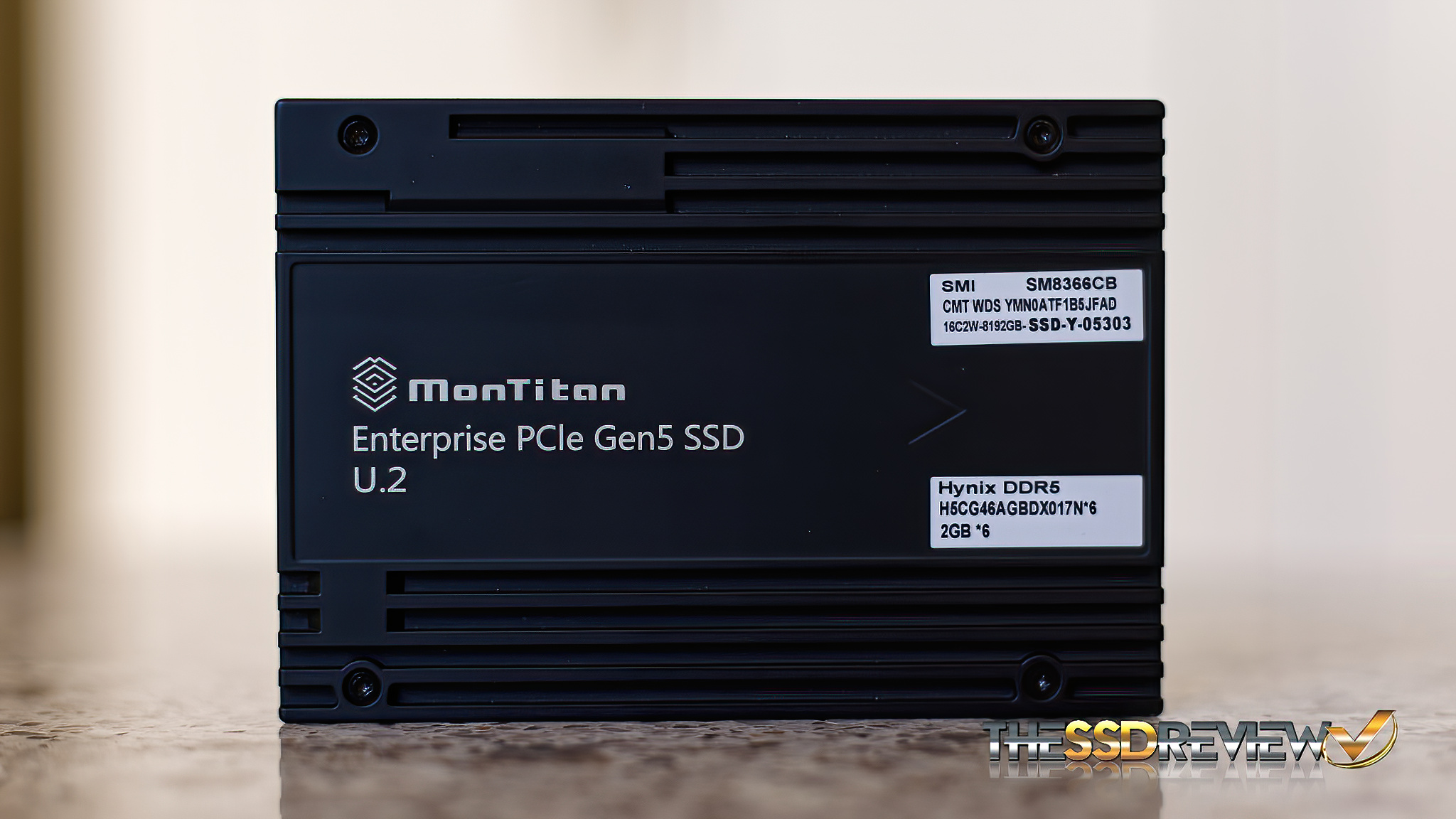 The SMI MonTitan Enterprise SSD is available in U.2, U.3, E1.S (9.5/15/25mm) and E3.x form factors ranging from 8TB to 64TB size variations. It is based on the SMI SM8366 Gen5x4 dual ported 16-channel SSD controlller that has a scalable single/dual channel 40bit DDR4-3200/DDR5-4800 DRAM interface and runs at 2400MT/s. This platform is customizable for KIOXIA and Micron TLC/QLC memory, however, as we are a Canada-based website, we also have the advantage of seeing many SSDs utilizing YMTC NAND flash memory. Such is the case today as our test sample contains YMTC X3-9070 232-layer XTacking 3D TLC NAND flash memory.