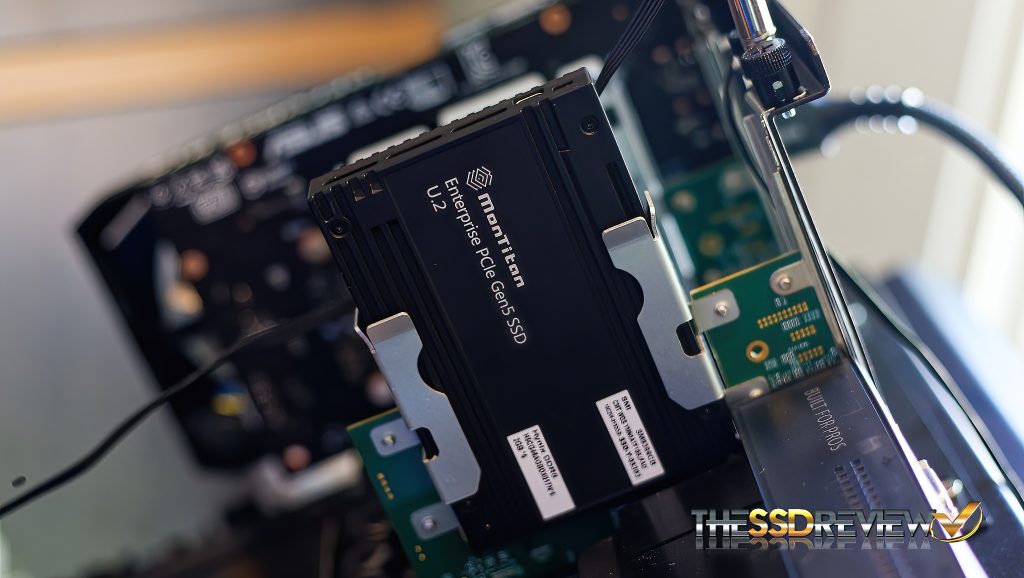 On our Test Bench today is the Silicon Motion MonTitan Gen5 7.68TB U.2 Enterprise SSD and it is available as a platform, or ‘Reference Design Kit’ (RDK) through SMI. The MonTitan Reference Design Kits (RDKs) are available in conventional NVMe and the market’s first QLC-based PCle Gen5, Zoned Namespaces, FDP and Multi-Dimensional SSDs for AI Support. Each RDK is purpose-built to support Turnkey Firmware that is power and performance-optimized per application with < 25W SSD average power and < 5W Idle SSD power.