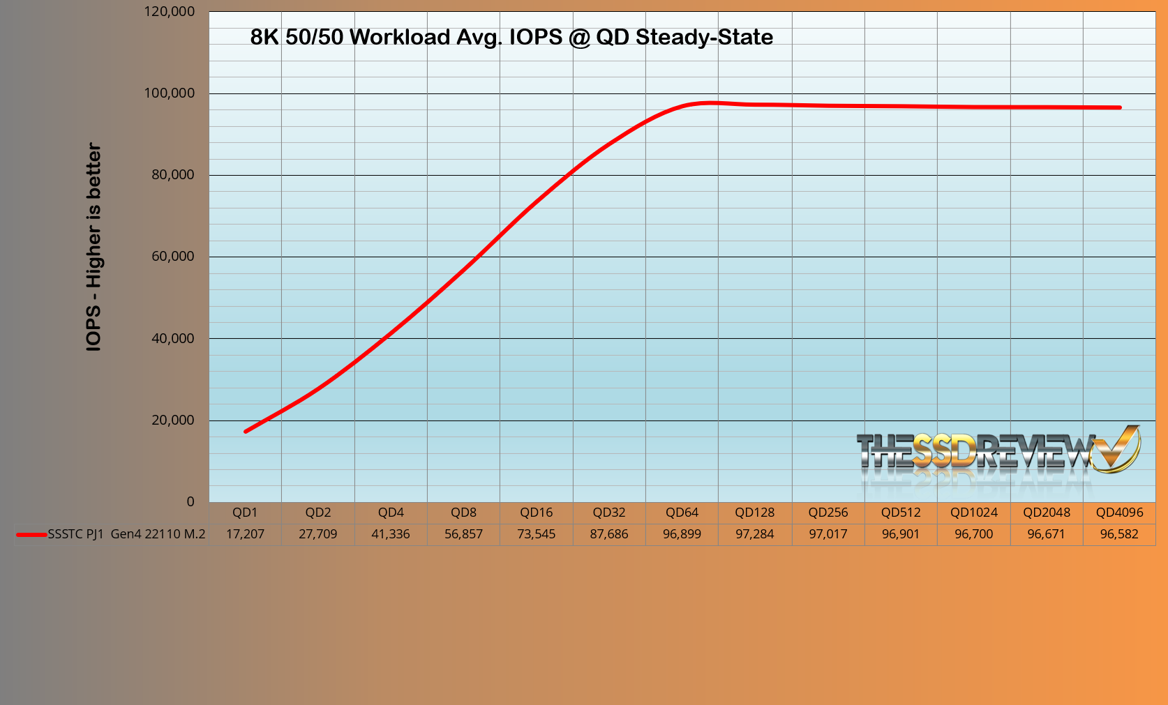 96K 8K 50/50 write IOPS is a good result, especially watching its performance level out as it does.