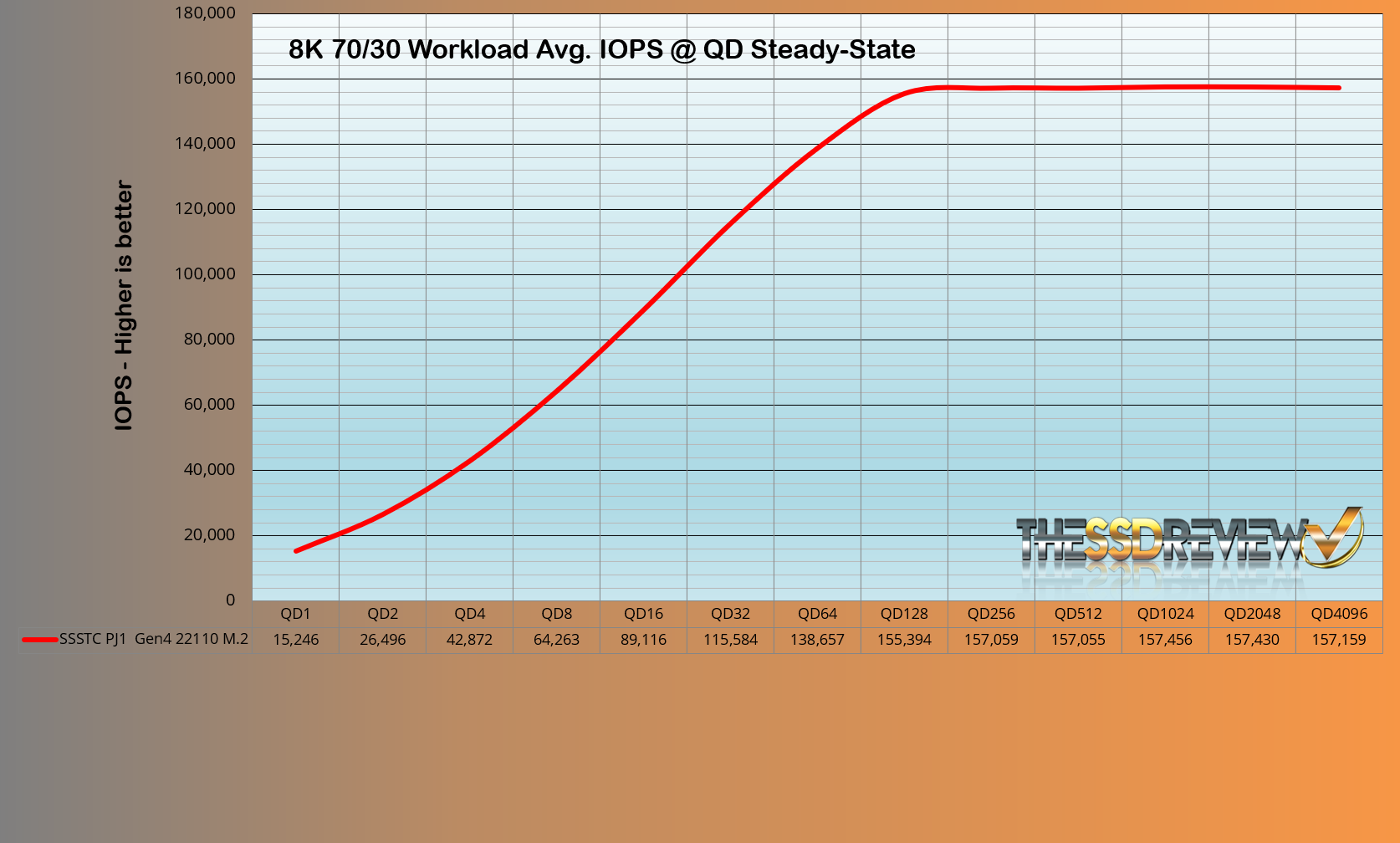 8K 70/30 is representative of a typical database workload and 157K IOPS is great.