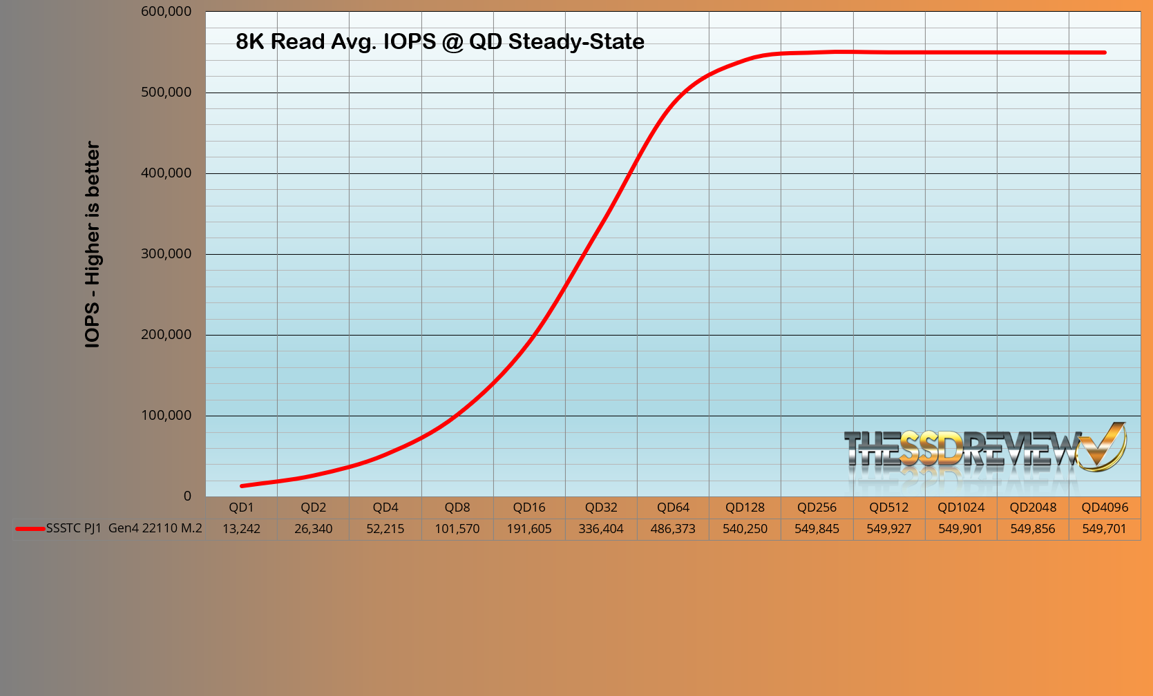 Steady-state is established after a full drive fill and the average steady-state 8K random write performance is approximately 47K IOPS.