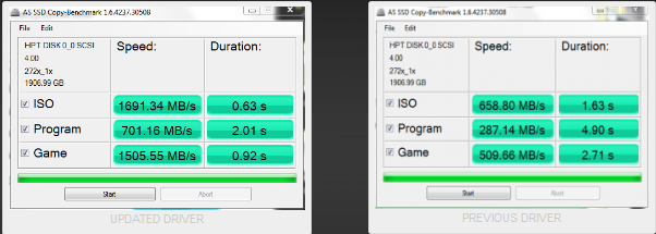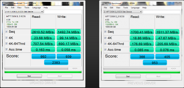 Its pretty easy to spot the updated driver, simply by comparison of the total scores obtained. Overall, the new driver exhibits much better characteristics across the board. As a means of comparison it is very interesting to see the response times with Anvils Storage Utilities showing far better results that the previous drivers.