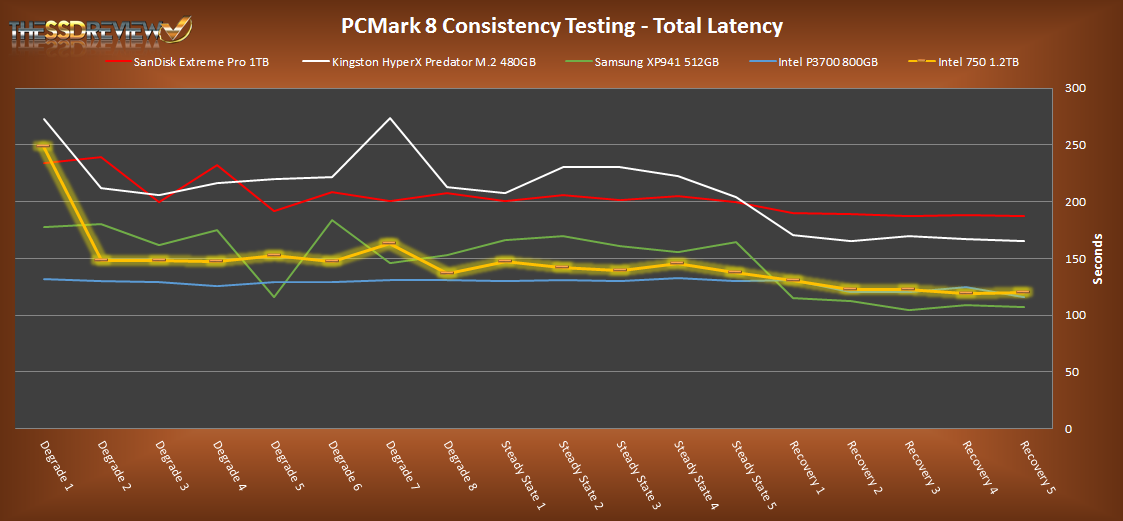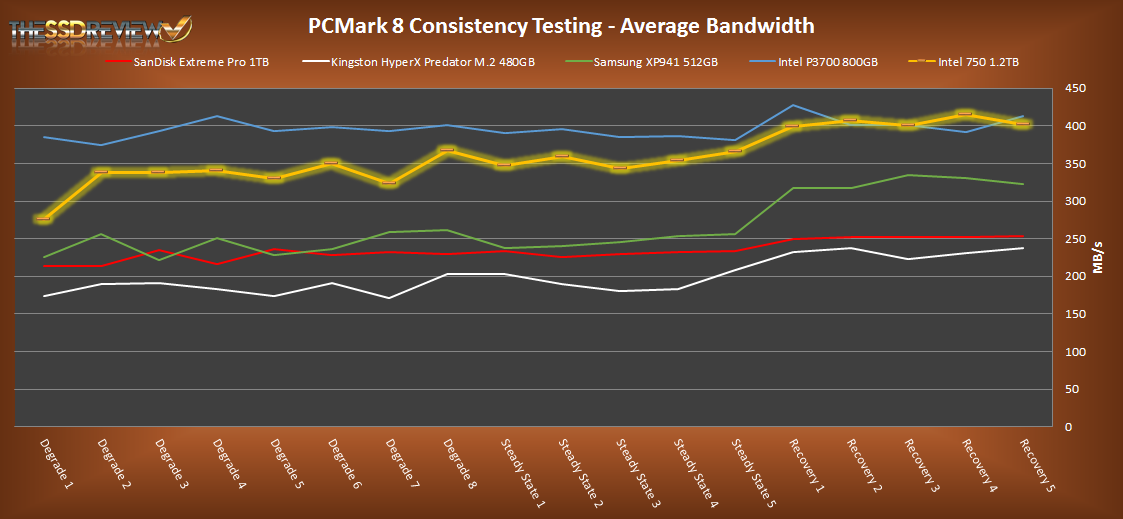 In reading the results, the Degrade and Steady State phases represent heavy workload testing while the recovery phase represents typical consumer light workload testing.