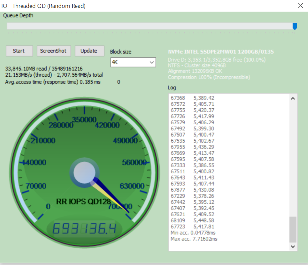 Just under 700K IOPS read with 189K IOPS write is really starting to impress.