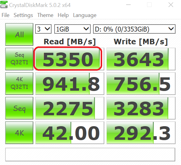 These results are PERFECTLY aligned with Crystal DiskMark results on second page. Crystal gets to 5353MB/s which is the same league as numbers displayed here.