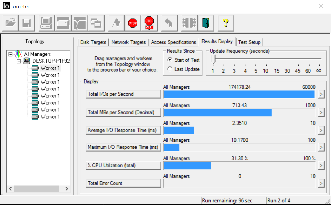Iometer is an I/O subsystem measurement and characterization tool for single and clustered systems. It is typical for our enterprise reviews, actually most enterprise reviews of any SSD review site, but we thought we might use it here just to see the highest we could reach. This is not steady state testing.