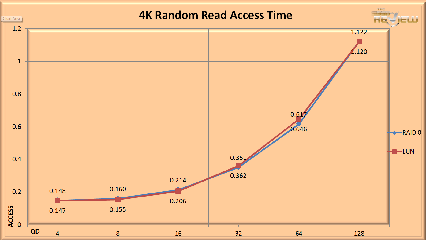 The 4k random access time is very close for both configurations, with good low QD performance of .147.