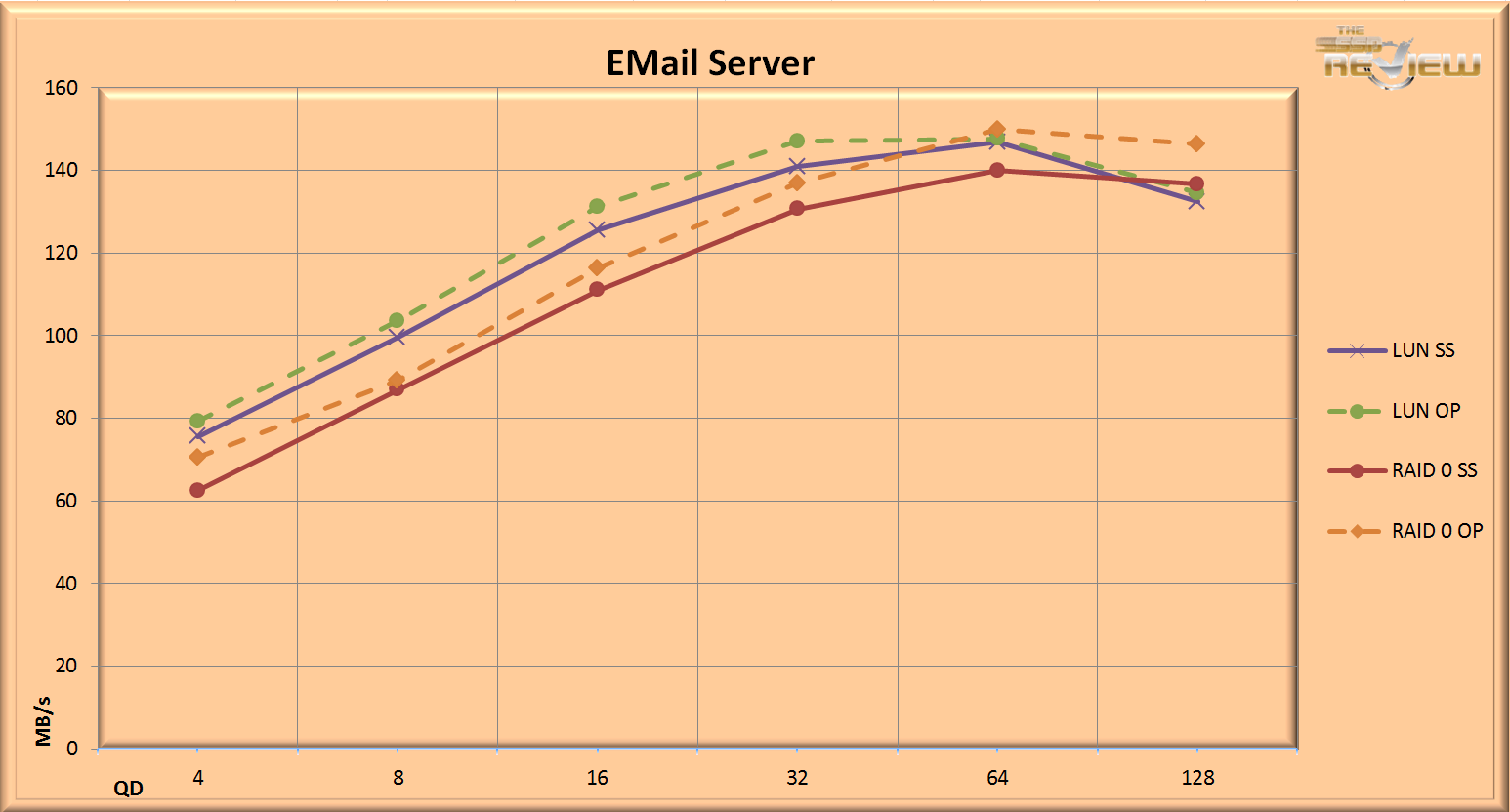 The Email profile is an emulation of a mail server, with a 50% Read and 50% Write mixed workload with very small 8KB files. This can be a very stressful test for even the best of drives.
