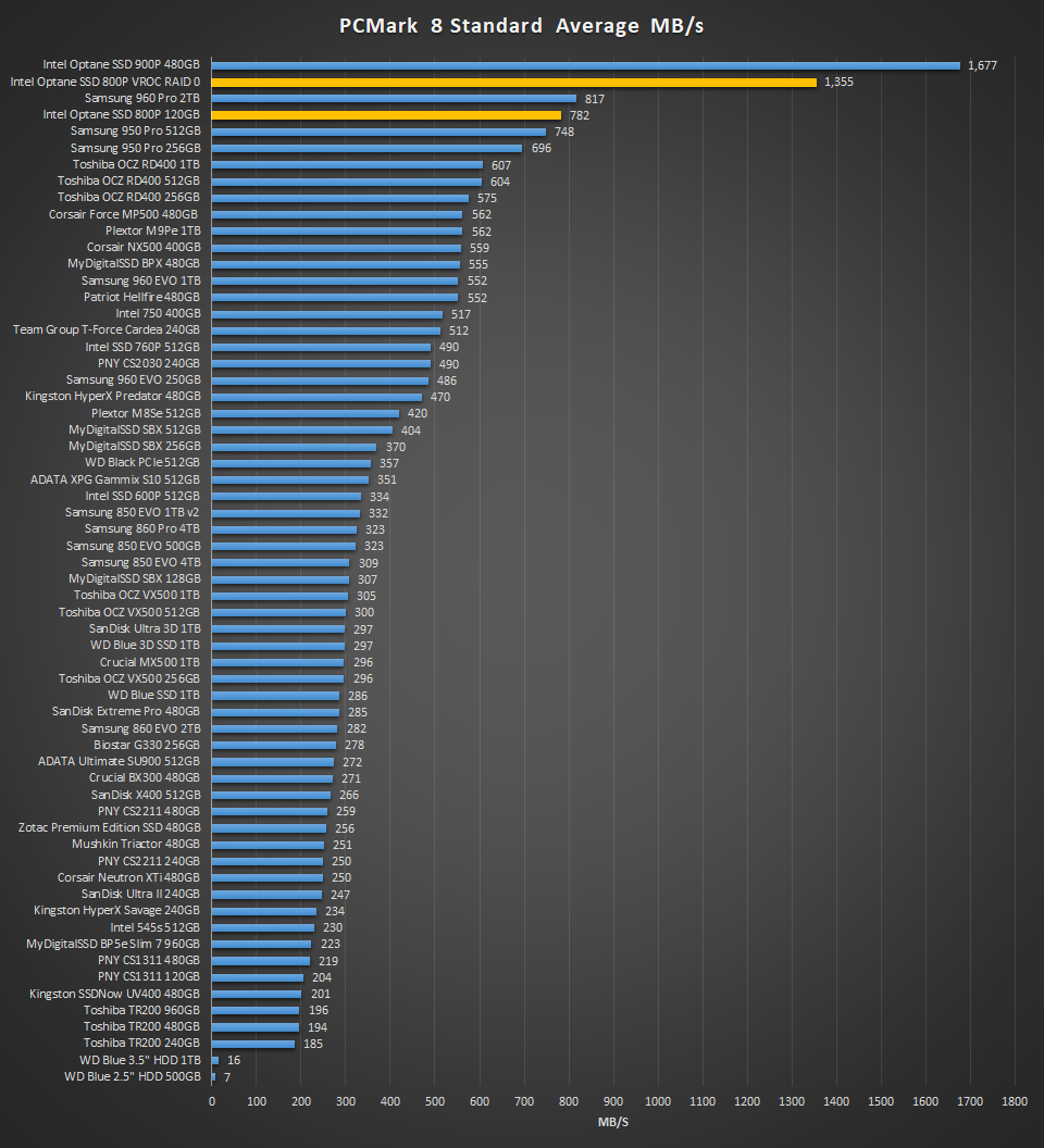 Remember when we mentioned earlier that we believed the Intel Optane 800P PCIe 3.0 two-lane SSD would outperform many four-lane SSDs? The Samsung 960 Pro NVMe SSD is a PCIe 3.0 four-lane SSD and is top in the business. It was the only SSD to better the Optane 800P (other than the 900P of course) out of a large sample size.