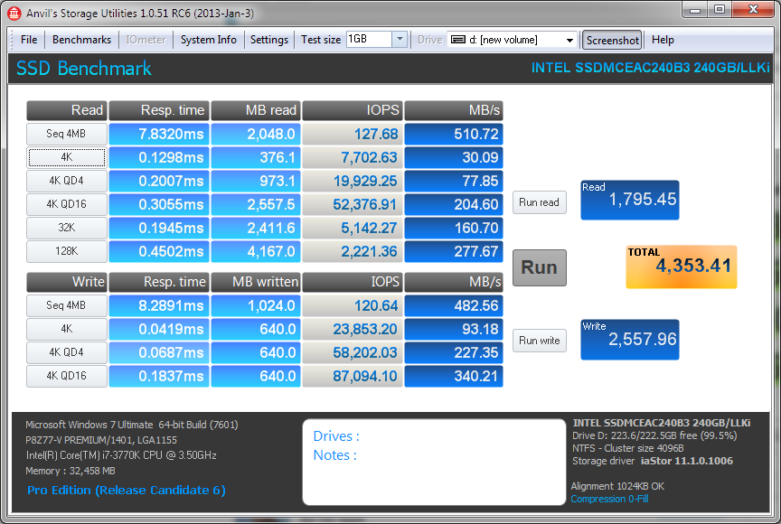 You may not see this for long (and its definitely not common) but you get a free-bee simply for reading! Over the last little while, we have been assisting with beta testing new benchmark software called Anvil Storage Utilities which is an absolutely amazing SSD benchmarking utility. Not only does it have a preset SSD benchmark, but also, it has included such things as endurance testing and threaded I/O read, write and mixed tests, all of which are very simple to understand and utilize in our benchmark testing.