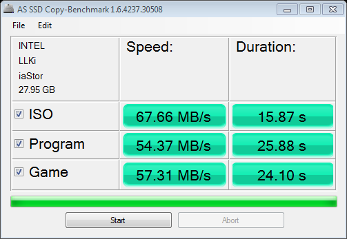It is similar to you moving a movie, music or pictures to or from your system. The result of the 240GB 525 on the right is excellent with very short transfer duration and all speeds reaching the SATA 3 area. The result of the 30GB 525 on the left, however, displays that it would take significantly longer to move your data, as much as 7 times longer in the case of the .ISO!