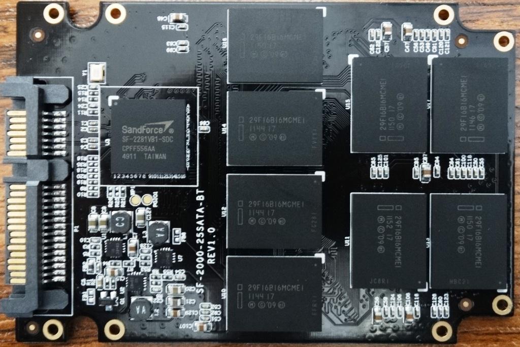 Inside the casing lie a black printed circuit board (PCB) which contains a LSI SandForce SF-2281 flash storage processor (FSP) and sixteen modules of Intel enterprise grade 25nm 16GB MLC NAND flash memory. Special attention must be given to this memory as we have only seen it once prior in a consumer SSD, this being the PNY Prevail Elite that we reviewed a short time ago.