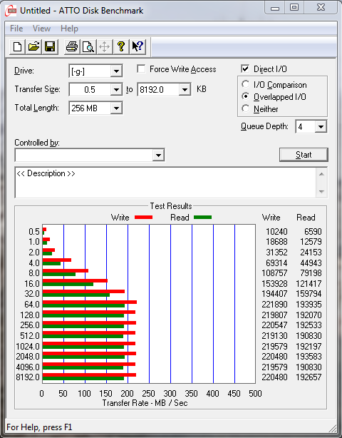 ATTO Disk Benchmark is perhaps one of the oldest benchmarks going and is definitely the main staple for manufacturer performance specifications. ATTO uses RAW or compressible data and, for our benchmarks, we use a set length of 256mb and test both the read and write performance of various transfer sizes ranging from 0.5 to 8192kb. Manufacturers prefer this method of testing as it deals with raw (compressible) data rather than random (includes incompressible data) which, although more realistic, results in lower performance results.