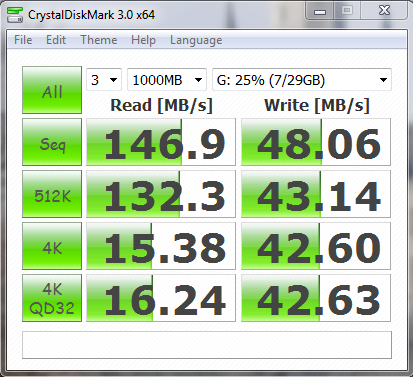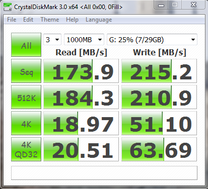 Once again performance is a bit less than specs, however, we were actually pretty impressed with the low 4k random write performance considering that we are testing a flash drive and not a full fledge SATA 3 SSD.