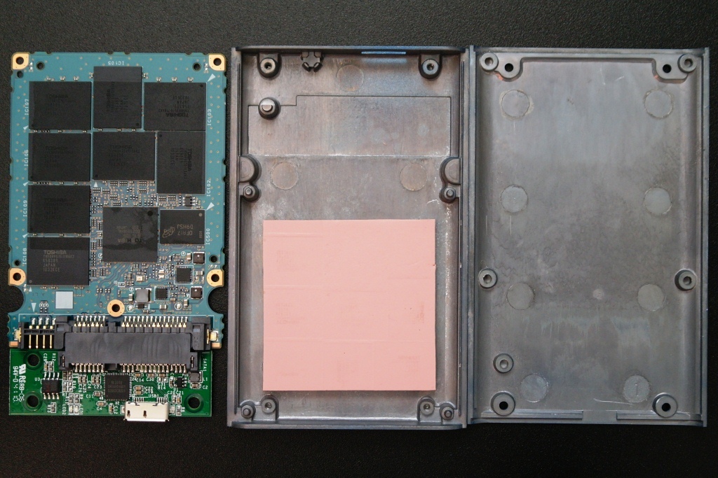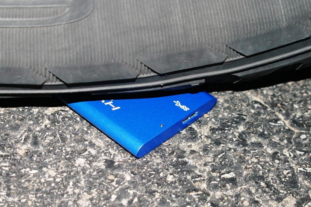 The Kingston HyperX Max 3.0 128GB SSD consists of an exterior casing, USB 3 SATA bridge daughter board and the SSD PCB itself. The exterior case is constructed of solid metal and shaped in such a way that it is virtually indestructible. It felt so solid, in fact, that I even stood on it for a bit before placing it below the front tire of our GMC. It was up and running seconds later.