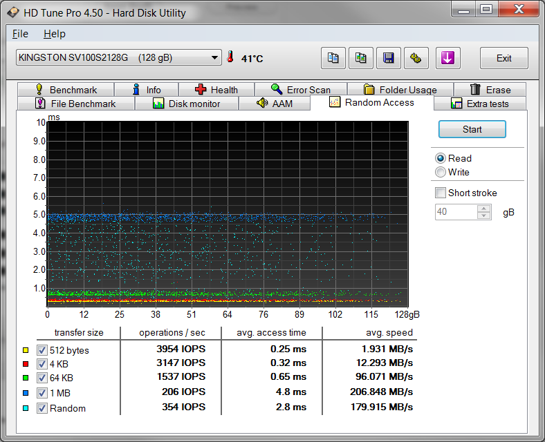 In examining the HDTune Pro results, we were very happy to see consistent speeds along with a nice smooth line in the graph showing that the SSD is comfortable with the system. The only difference we are seeing from these tests and those of the top SSDs is that there is a slightly elevated access time accompanied by lower performance speeds in the lower random operations. Its really an unfair comparison even looking at the top SSDs which have a significantly higher cost but to show how capable this drive is. The comparison most will want to be shown is that of the hard drive vs the Kingston SSDNow SSD because this is the audience that will be looking hardest at this drive for hdd/ssd migration.