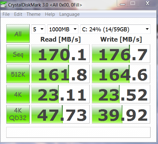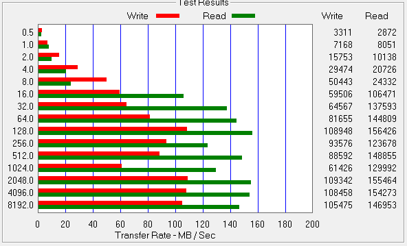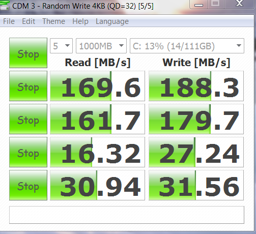 Although the Renice X3 is still the winner here, two things that stand out are the fact that the high sequentials in Crystal DiskMark testing don’t even reach the 200MB/s level as well as the obvious differences in the low 4k random results.
