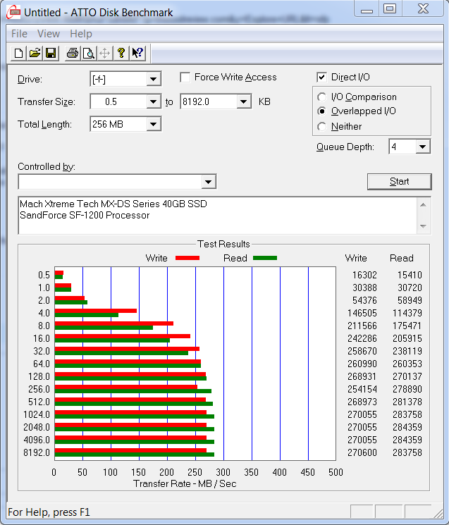 This result somewhat shocked us initially as it differed significantly from Mach Xtremes own published specifications for this SSD. These are excellent scores somewhat consistent of that of most SandForce SF-1200 controlled drives.