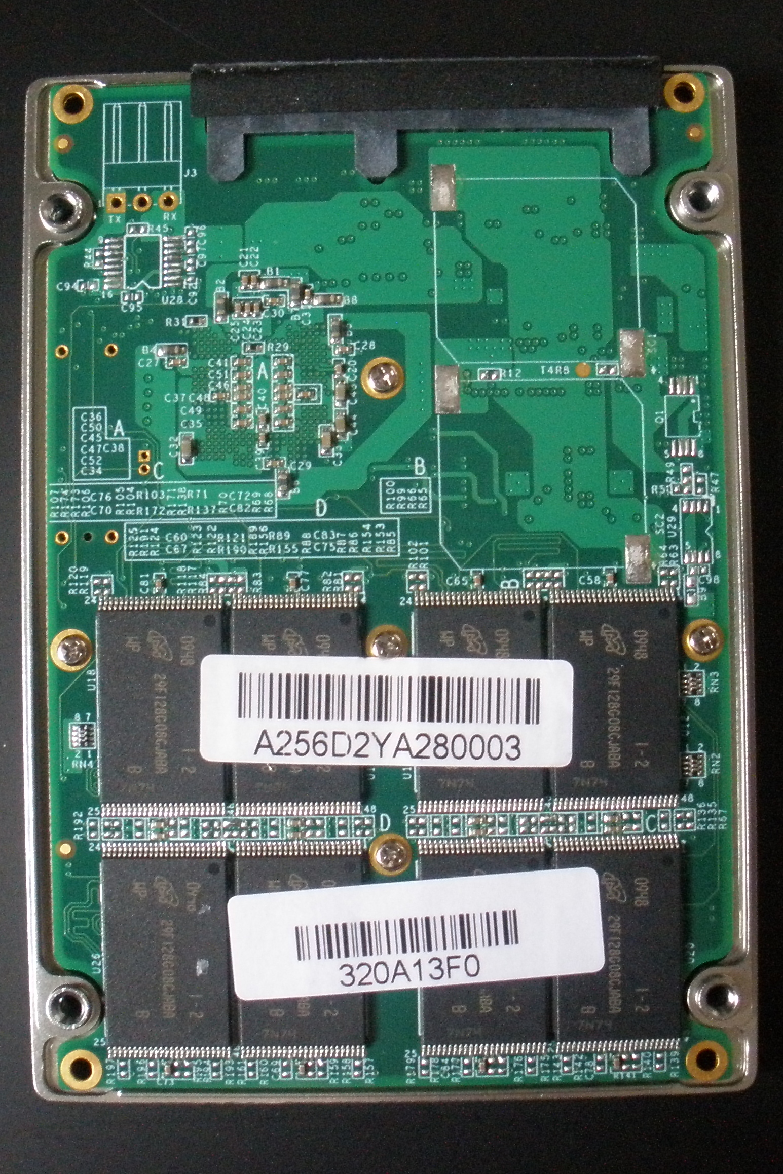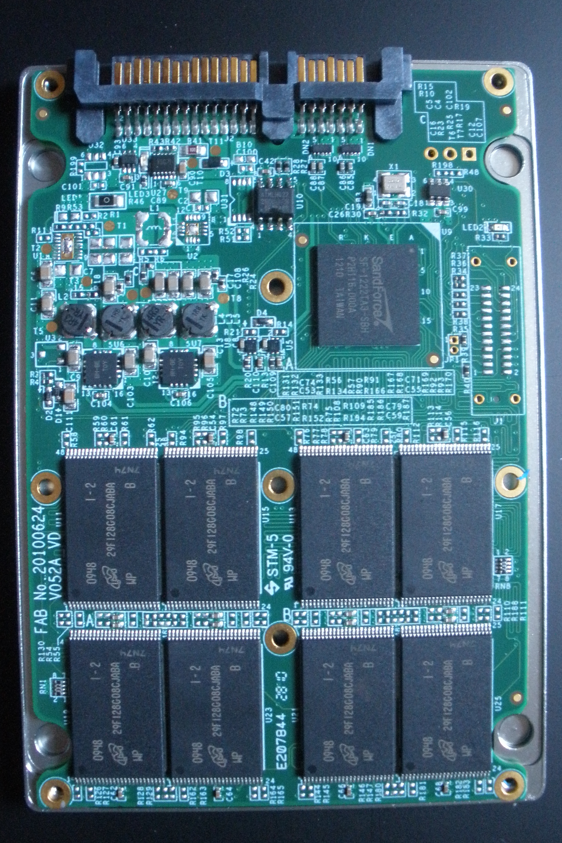 This is also an excellent opportunity to see that the SSD contains 16 pieces of Micron 29NM NAND, each piece accomodating 16Gb of storage for a total of 256GB. The drive only provides 240GB to the user as the rest is proprietary to the firmwares use for over provisioning and other behind the scenes activities.