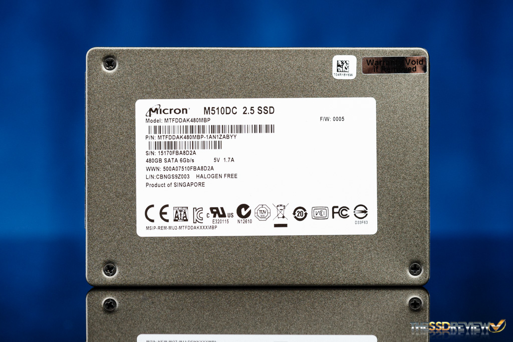 The NAND in the M510DC is part number: MT29F1T08CUCCBH8-10:C. It is Micron’s 128Gbit 16nm Synchronous MLC, the same NAND used in the M600, only it is a bit higher binned. In total the five 128GB packages provide for 640GB of RAW NAND, thus over provisioning comes in at about 33% in our 480GB model. Although the total RAW capacity of this SSD is 480GB, the usable storage space is 447GB.
