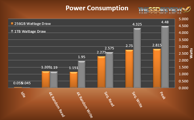 I’m sorry, I had not enabled hipm and dipm support for the drives when I tested the idle power draw. I have gone back and enabled it and new, much better idle results have been found. The 256GB model sits around 55 milliwatts idle and the 1TB sits around 45 milliwatts idle. The new results have been added to the review.