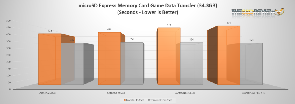 For this test, the ADATA Premier Extreme microSD Express 256GB Memory Card is installed into the Switch 2 and game data is moved from the console to the card and then moved back to the console, both timings being measured and recorded. The size of the data being mmoved is 34.4GB.