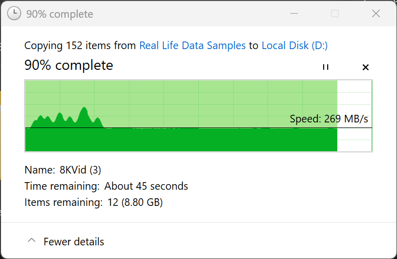 i wonder if you could test, a SINGLE file of 900 GB transfer in writing to it, whether then the 600 MB/s would be sustained, or whether after a SLC cache peak speed of perhaps 100 GB transferred, it would radically start drop down to its “standard” 210 MB/s for the rest of the transfer. Akin to Tech Powerup reports (i forgot with what tool one could do this, but maybe you have (or can make) a huge single file, to test it even in the Windows transfer. thanks