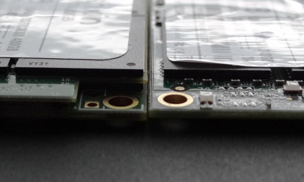 As a direct comparison, we tried to demonstrate the difference between the Mushkin Atlas 240GB mSATA SSD and the 480GB version which contains two PCBs, more commonly known as a mother and daughter board. The regular Atlas measures 3mm in height while the Atlas 480GB mSATA SSD measures 5mm. Our opinion is that this mSATA SSD will fit into any system without difficulty.