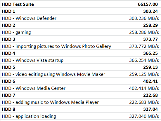 The SSD Review uses benchmark software called PCMark Vantage x64 HDD Suite to create testing scenarios that might be used in the typical user experience. There are eight tests in all and the tests performed record the speed of data movement in MB/s to which they are then given a numerical score after all of the tests are complete. The simulations are as follows: